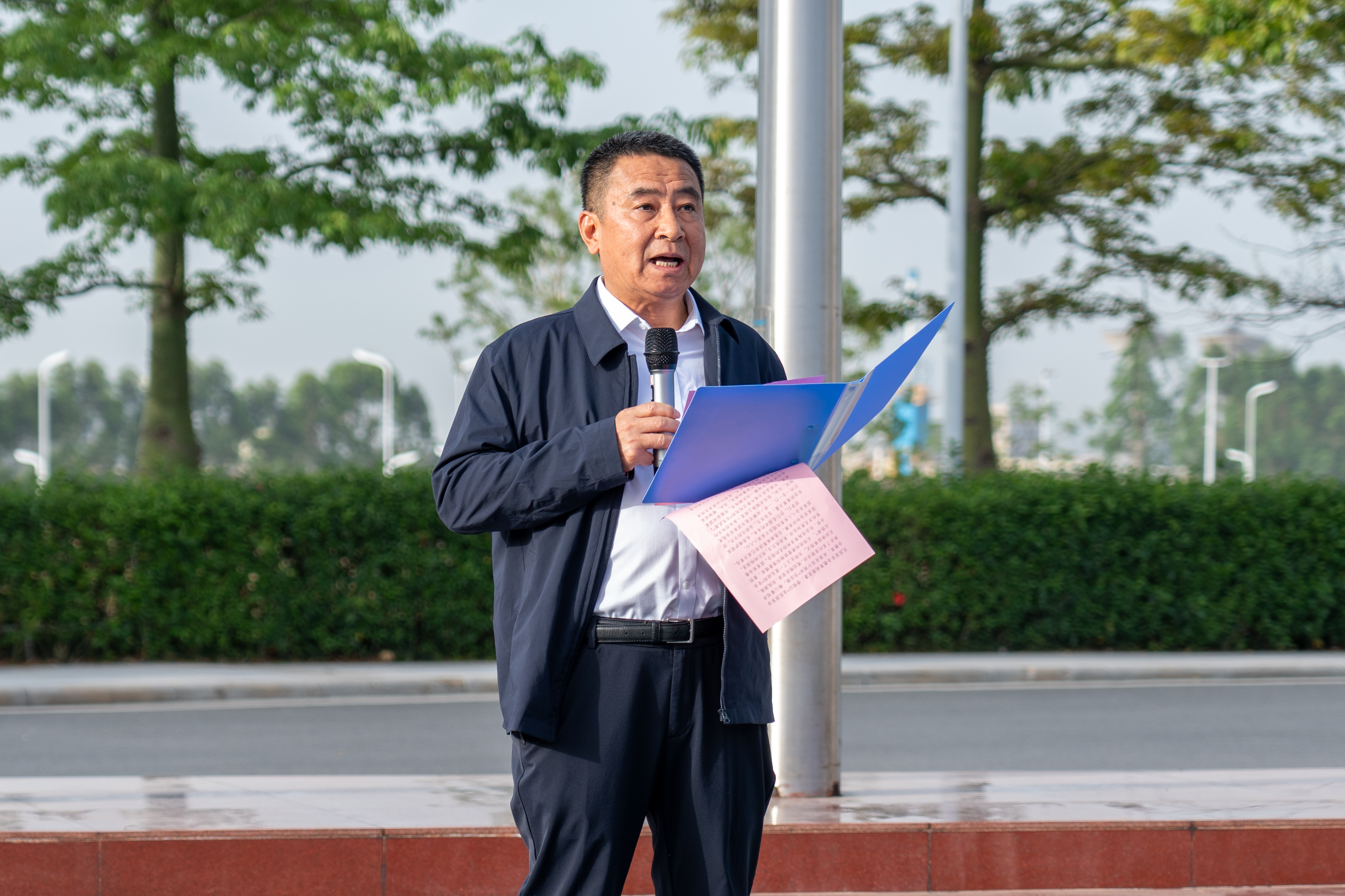 升旗仪式后,党委书记陈光团在国旗下讲话,他表示,在第十个“全民国家安全教育日”,学校举行升国旗仪式,旨在增强师生的国家安全意识,提升维护国家安全的责任感和使命感,回顾过去十年国家安全教育的发展历程,更要深刻认识新时代赋予我们的责任与使命。陈光团书记指出,十年来,国家安全教育从最初的“什么是国家安全”的基础普及,逐步深入到“总体国家安全观”的系统学习。回顾这十年,广州应用科技学院深入学习贯彻习近平法治思想和习近平总书记关于国家安全的重要论述,全民国家安全教育成效显著。陈光团书记提出三点希望:一是做国家安全的坚定守护者,从自身小事做起,严守秘密,抵制不良信息,举报可疑行为;二是做国家安全教育的积极传播者,主动学习并向他人宣传普及,带动更多人关注和参与;三是做国家安全的勇敢践行者,将个人理想与国家需要结合,在未来为维护国家安全贡献智慧和力量。