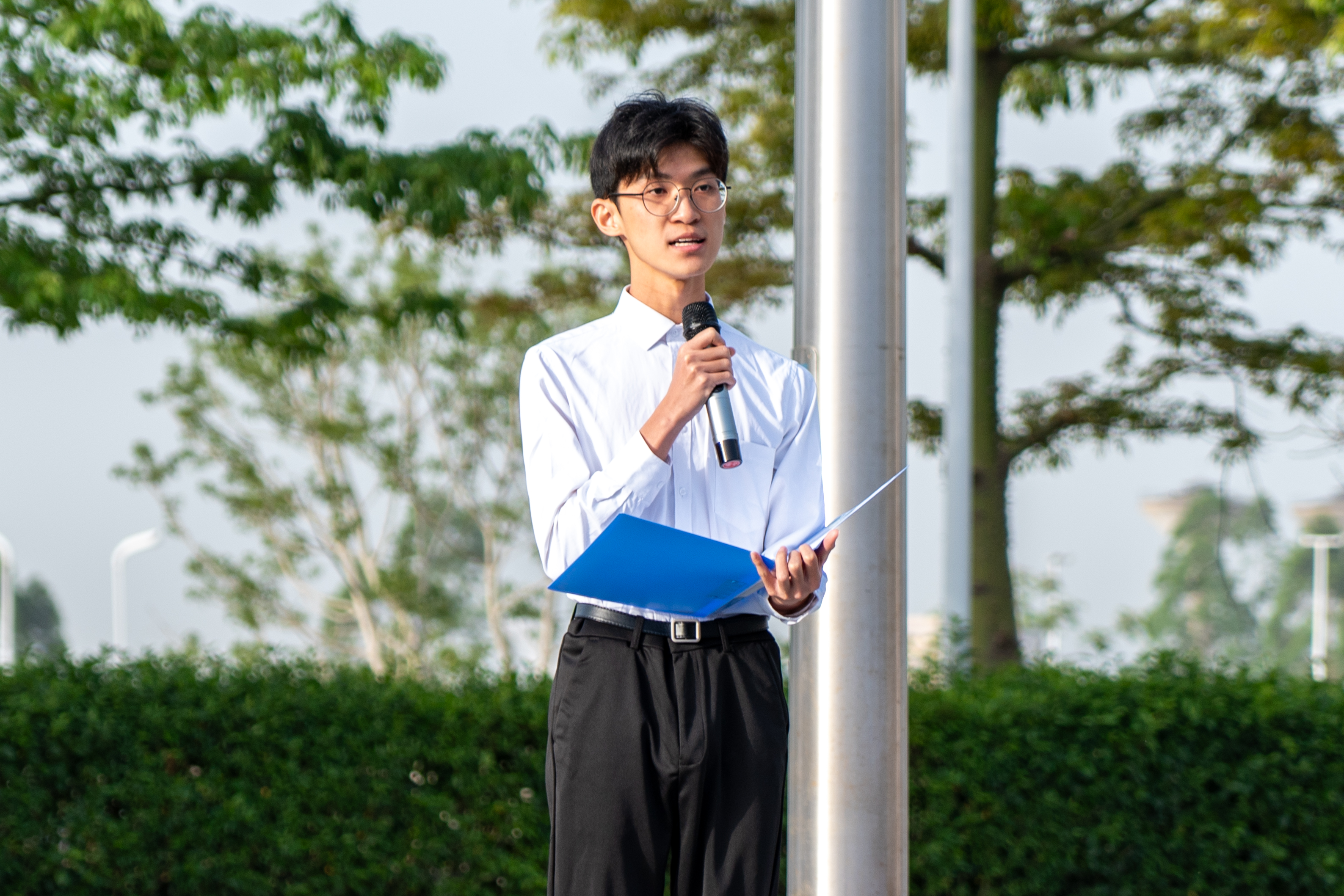 24级自动化2班学生郭正恩作表态发言,呼吁全体师生保持警觉,从细微处防范安全风险,共同织密国家安全防护网。