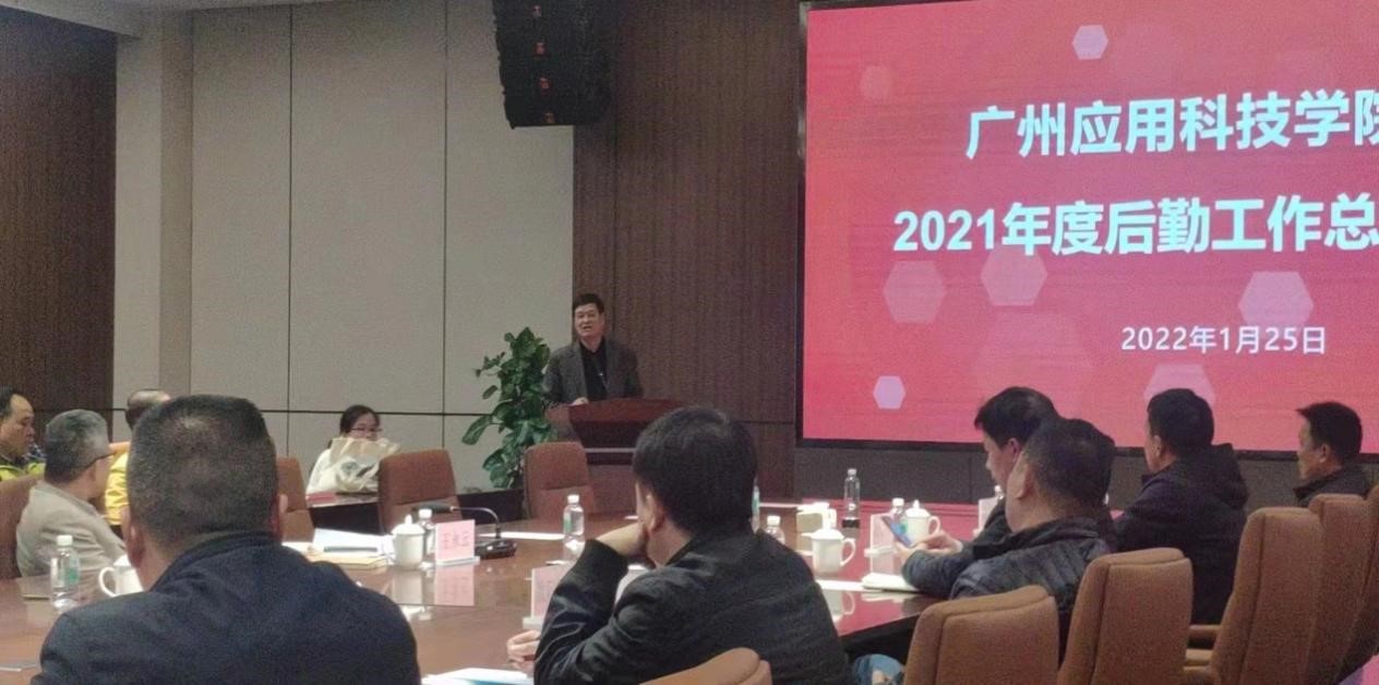 2022年1月25日下午,广州应用科技学院2021年度后勤工作总结会在肇庆校区行政中心501国际会议厅召开。学校董事长、校长刘剑锋出席并讲话。党委书记王永云,主席助理、集团后勤副总监李华钢出席会议,全体后勤人员参加了会议。会议由后勤副校长李荆松主持。