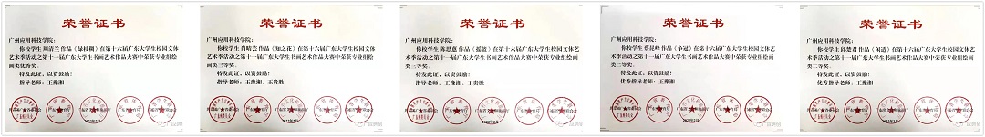 2021年12月17日在广东省团委,广东省教育厅,广东省文化旅游厅,广东省体育局,广东省学生联合会五家政府机构主办的第十六届广东大学生校园文体活动之第十一届广东大学生书画艺术大赛中,我院18级国画专业五位同学获奖。
