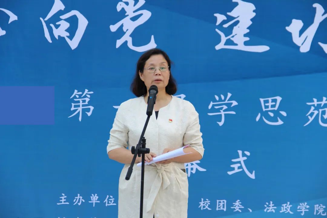 学生处处长胡斌介绍了首届学思苑文化节的实施方案,活动分为“党建引领”、“心理健康”、“三全育人”、“专业实践”等4个模块的11个项目。法政学院社会工作专业教师代表刘百秀老师介绍了专业融入参与此次学思苑文化节的教学背景及实践教学课程;法政学院21级社会工作专业黄嘉钰同学作为学生代表在开幕式上发言。