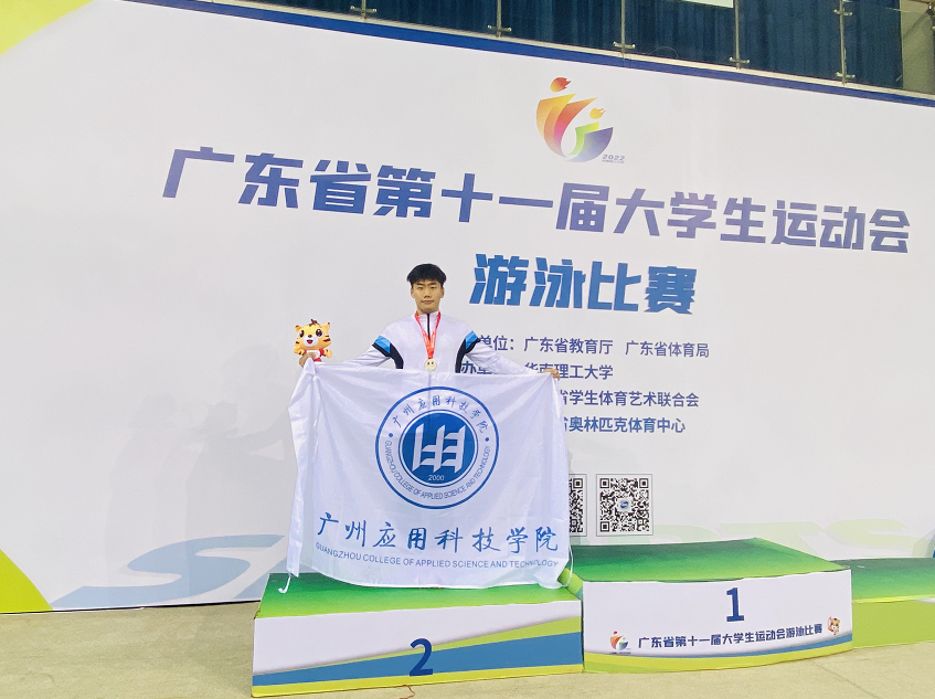 广东省第十一届大学生运动会游泳比赛中,我校游泳队奋勇争先,刘炜诚同学在男子甲组50米自由泳决赛、男子甲组50米蛙泳决赛中,分别斩获一枚银牌。在游泳比赛的前3个比赛日中,我校游泳队已获得1金2银的好成绩。