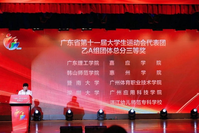 6月30日下午,广东省第十一届大学生运动会闭幕式在华南理工大学五山校区东区体育馆举行。我校体育科技学院张军院长、陈飞副院长作为我校代表参加闭幕式。