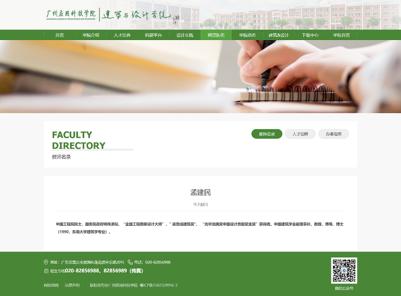 刘剑锋董事长代表学校对各位专家对我校“广东省工程研究中心”申报项目的支持表示感谢,并欢迎孟建民院士和张玉坤教授在新学期开学莅临学校指导专业教学工作。信息提供:建筑与设计学院 曹伟