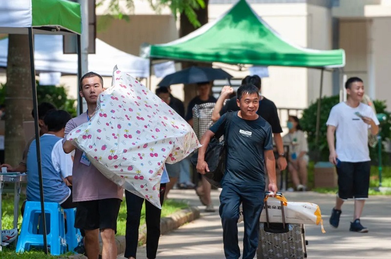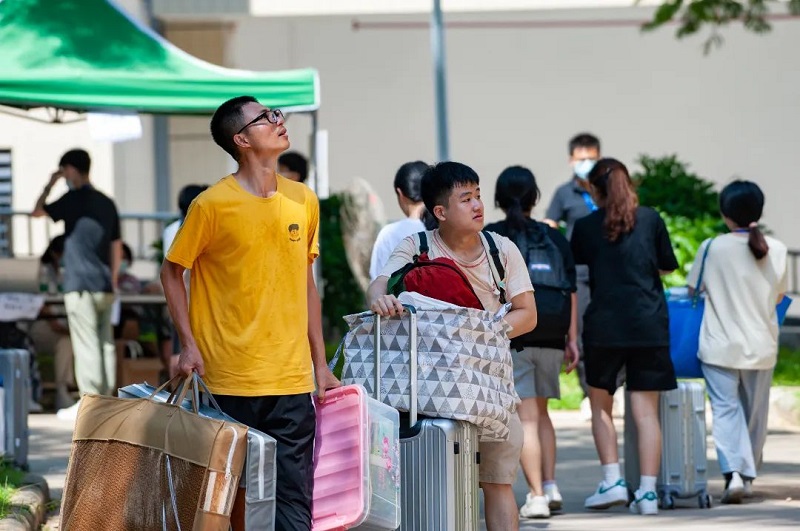 来自五湖四海的莘莘学子,怀着对未来的无限憧憬,踏着轻盈的脚步,听着父母的叮嘱有序进入校园。跟随报到流的指引,新生和家长一站式到达宿舍报到地点以最快速度实现拎包入住。