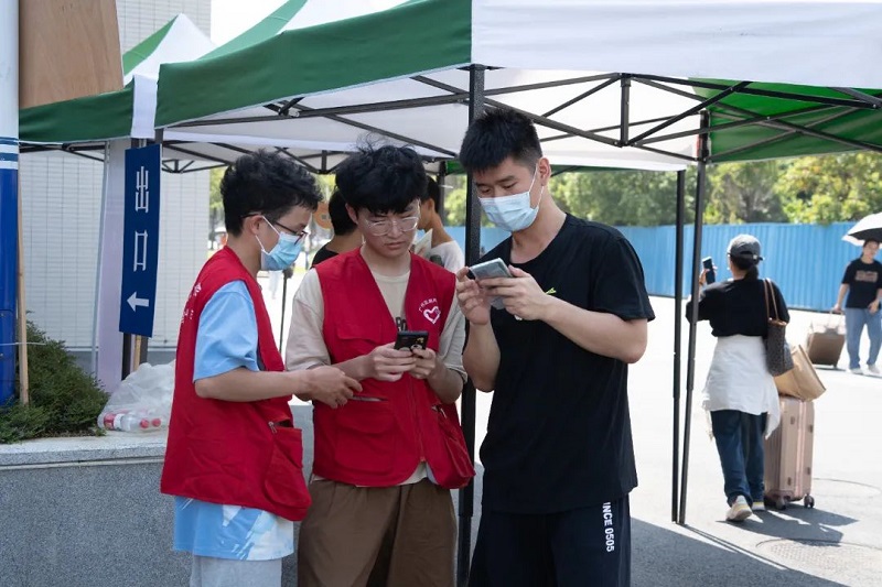 志愿者热忱周到,为新生提供志愿服务。不惧炎炎夏日,不惧汗流浃背守候在学校的各个迎新接待点耐心提供引导、指示和答疑。协助新生搬运行李,顺利入住宿舍,让新生们感受到“热情温暖的广应科”。