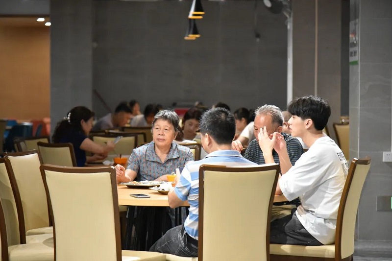 干净整洁的桌椅、整齐有序的隔板、热气腾腾的饭菜、和蔼可亲“不手抖”的食堂阿姨、温馨舒适的就餐环境,让新生感受到家的温暖。也让一起前来的家长们品尝到广应科最有烟火气的“三餐四季”。