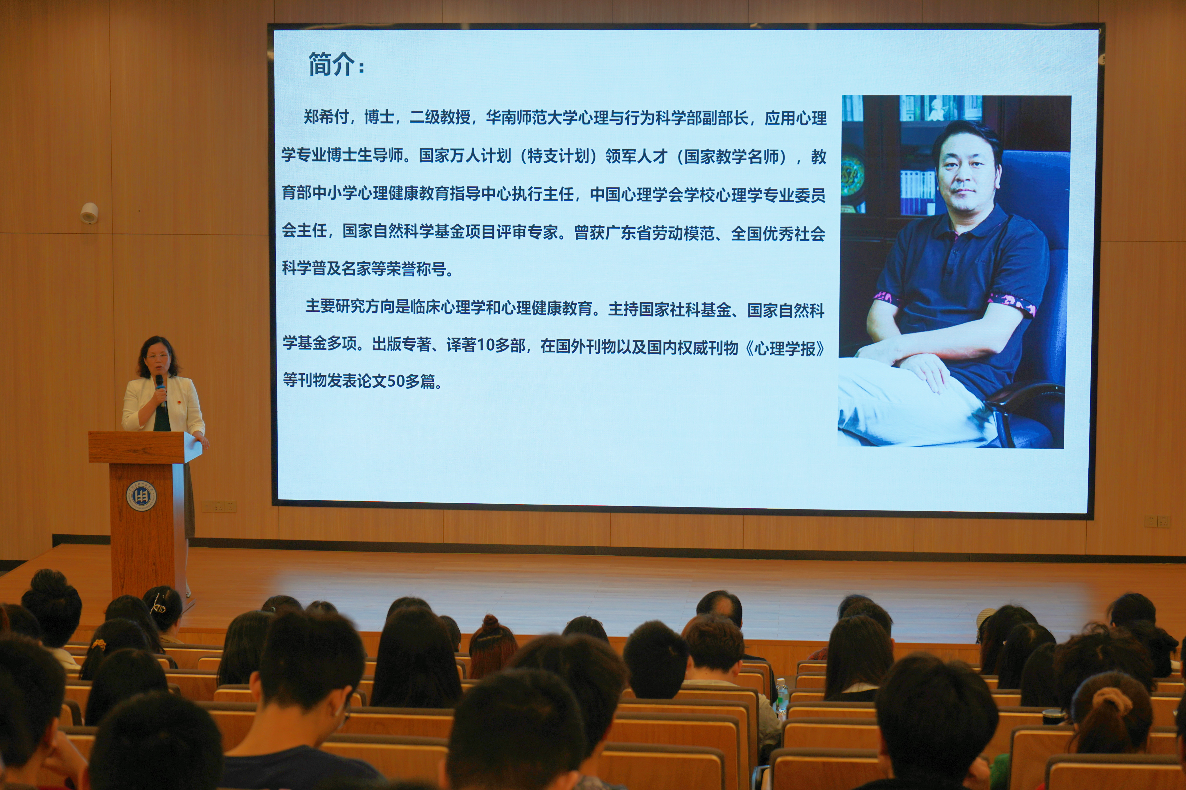 4月25日下午,“百越大讲堂”第二十四讲于图书馆一楼报告厅举行。教育部中小学心理健康教育指导中心执行主任、中国心理学会学校心理学专业委员会主任、广东省劳动模范、华南师范大学应用心理学专业博士生导师郑希付教授应邀为我校师生做《压力与情绪管理》专题讲座。学校副校长刘志新,团委、心理健康教育中心、各二级学院学生工作负责人,全体辅导员,心理健康中心全体工作人员以及300余名学生代表聆听讲座,讲座由刘志新副校长主持。