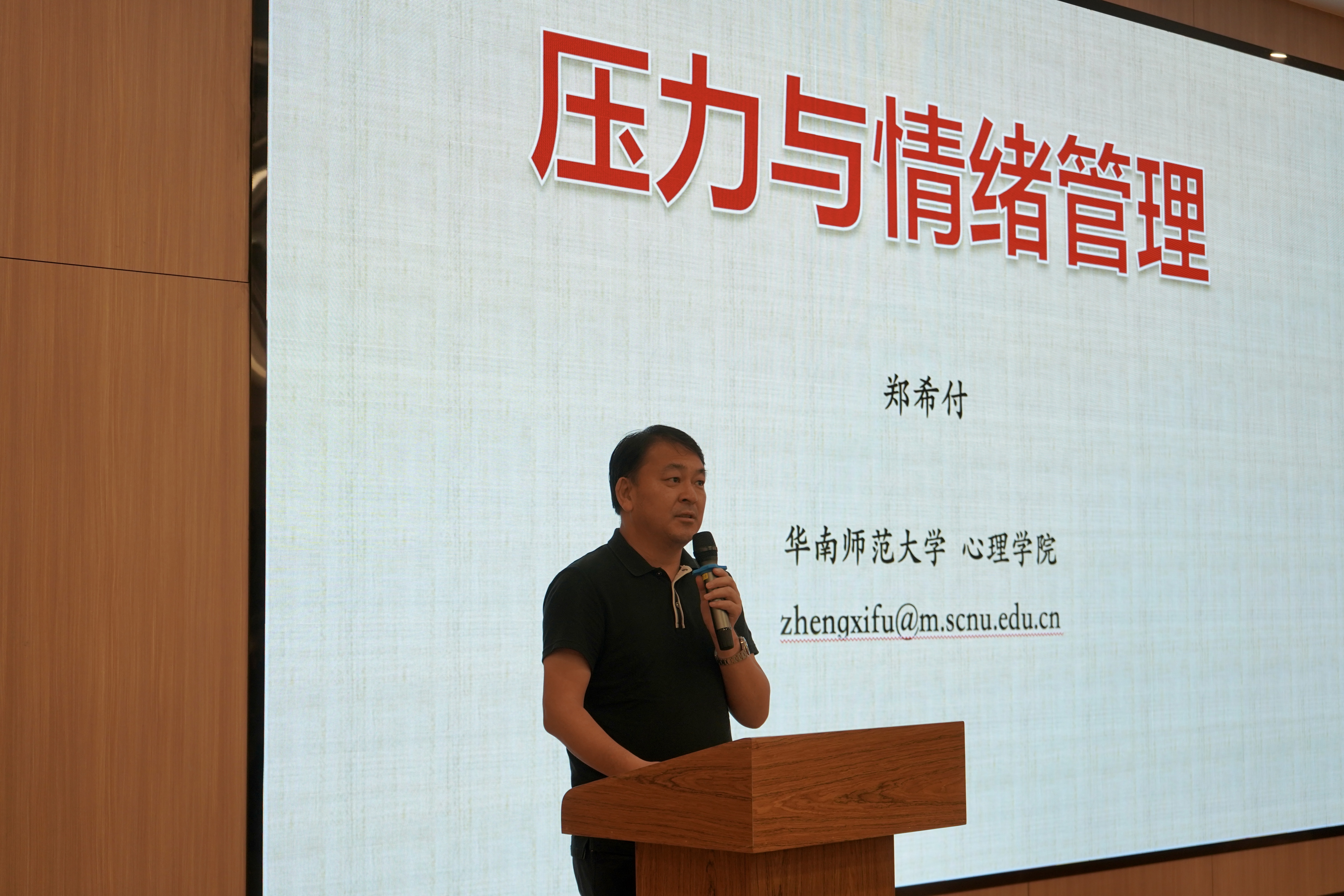 讲座伊始,郑希付教授通过有趣的压力测试实验,引导师生认识什么是压力。他紧密结合当前社会热点,以幽默风趣的语言,从什么人更轻松和幸福、压力作用和压力源、情绪与压力的释放、如何保持自信、人际信息的判断和分析等五个方面,深刻阐释压力的来源和疏解的办法,帮助大家形成正确的心理健康认知,指导大家学会调节情绪和释放压力。在场师生被郑教授的幽默和睿智所带动,氛围轻松热烈,掌声不断。