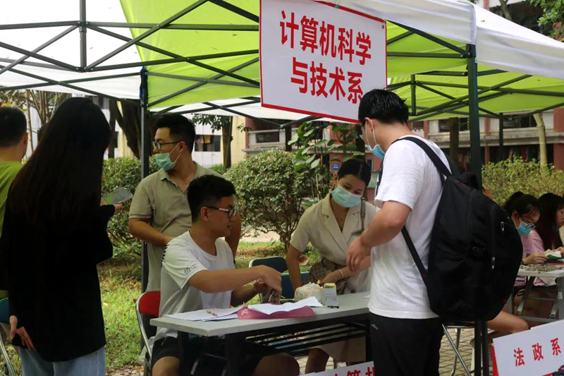 为做好专插本新生的迎接工作,我校在注册报到沿路,由校团委、学生会、青年志愿者协会共同设立了10多个志愿者协助站,为专插本新生及家长提供引导服务。学校还设有接驳车,协助托运行李,接送学生到达指定宿舍位置。